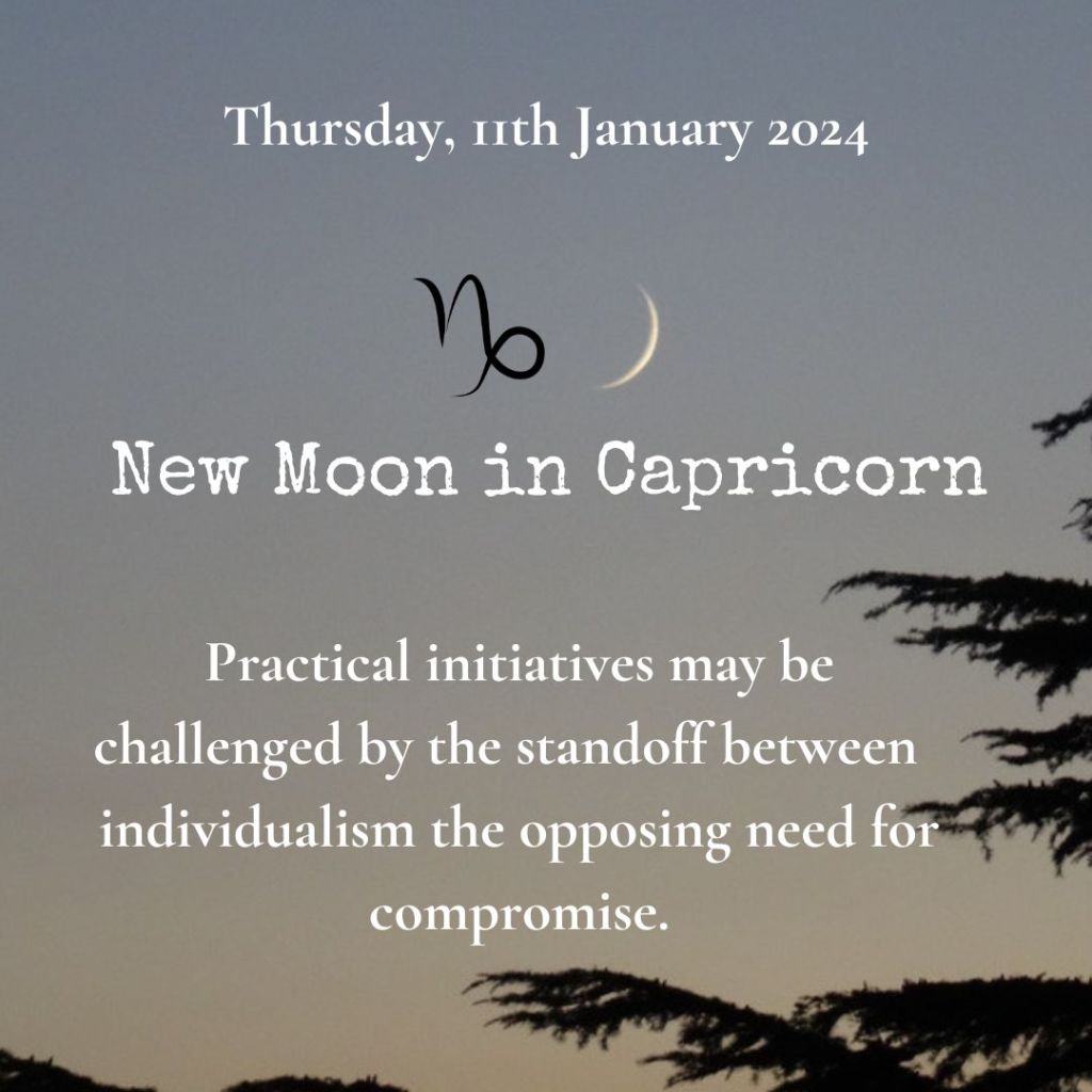 New Moon in Capricorn at 20 deg 44’at 11h57 UT on 11th January 2024