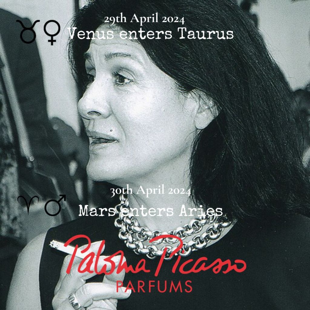 Her signature perfume, ‘Paloma’ she describes as being for ‘strong women like myself’. This sounds like warrior Venus who understands the inherent power of the feminine archetype. She is known for her red lipstick, which she apparently began wearing at the age of six. Red also features in the packaging of her perfumes. It is, of course, the colour of Mars.