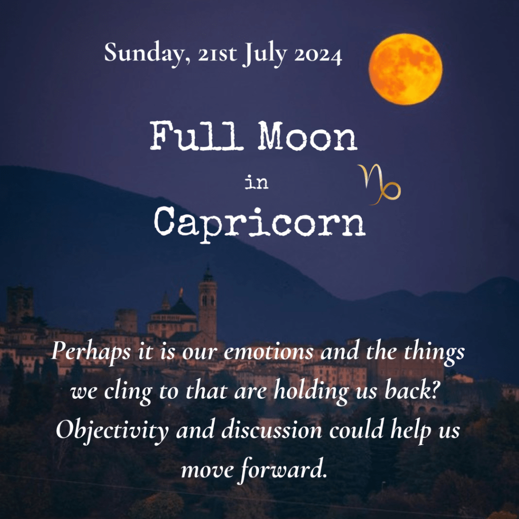Full Moon on 21st July at 11h17 BST at 29 deg 6’ Capricorn