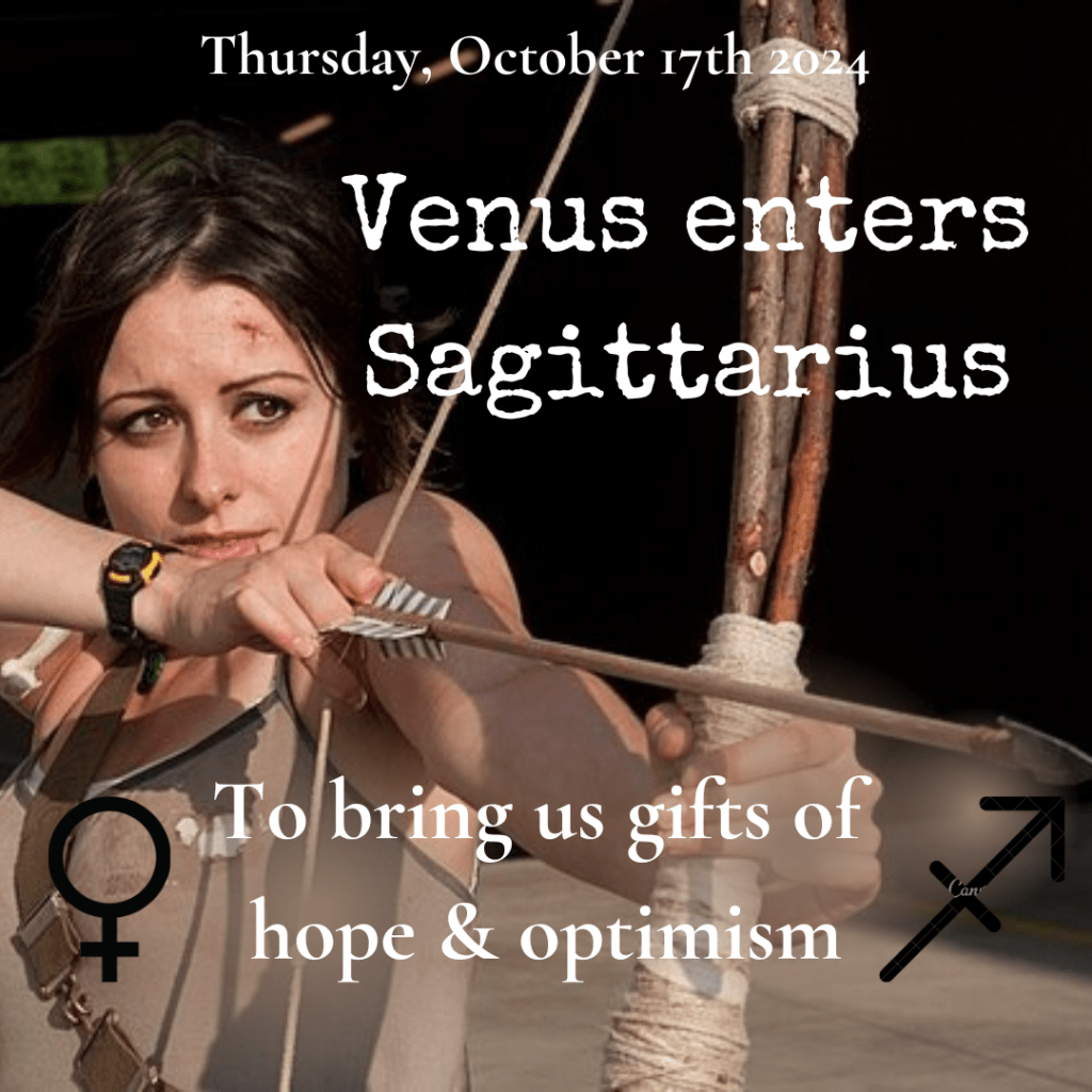Venus enters Sagittarius at 20h28 BST, 17th October 2024