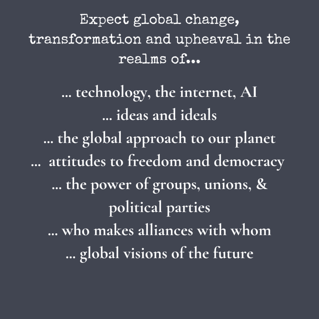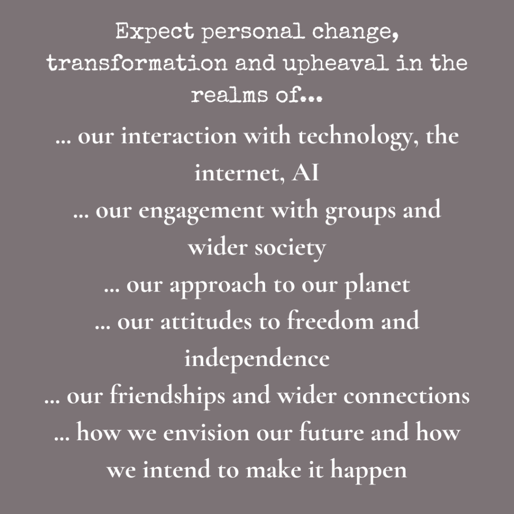 None of this is cuddly. Astrologer Kim Farley talked of the ‘slow road to sudden change’. Pluto, planet of power and transformation in Aquarius suggests profound changes to our ideals and the way we think and operate as a ‘human group’.