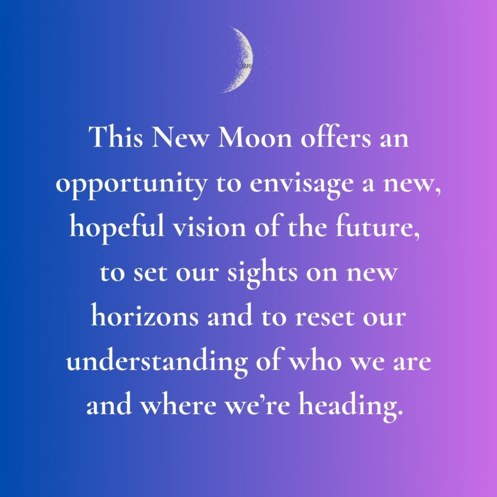The New Moon feeds into these themes and offers an opportunity to envisage new horizons, to reset our connections to ourselves and to our vision of our future.