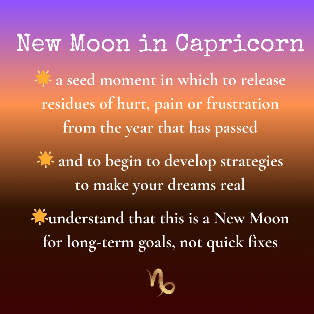 A New Moon is a seed moment and it seems appropriate that it should be happening as we prepare to transition from one year to the next.