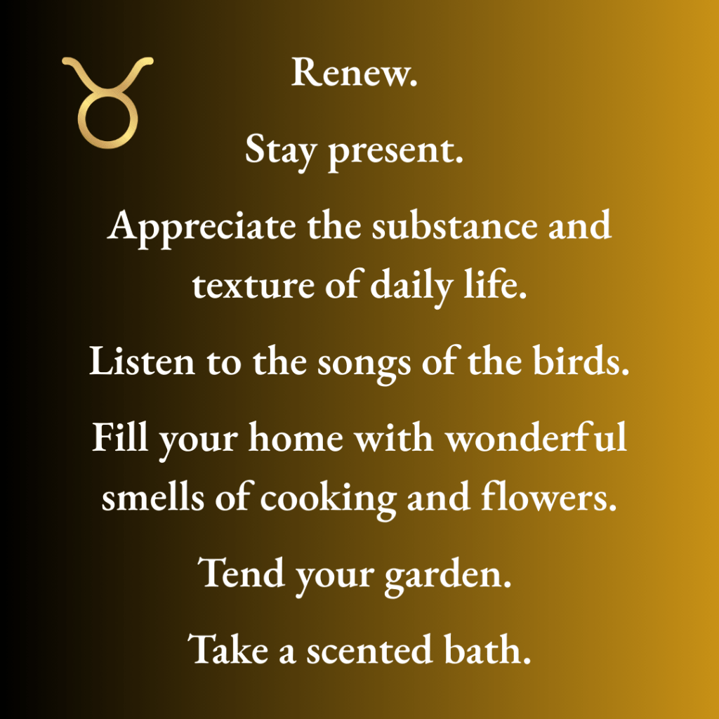 Now we have emerged, bruised from our encounters, but ready to begin a new cycle. We are wiser, we know the challenges, but there is always hope, and the Taurean Bull plays the long game.