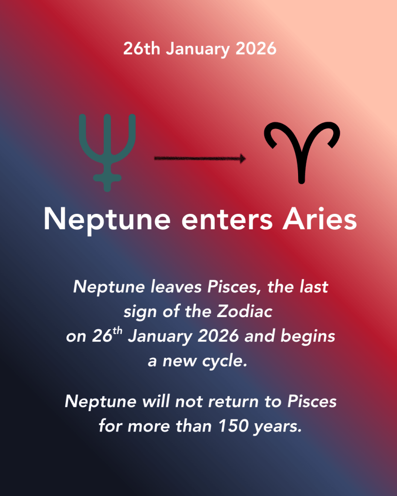 On Monday 26th January 2026, at 17h34 UTC, Neptune moves into Aries, the first sign of the Zodiac.